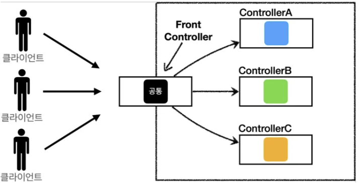 ⚠️ MVC 패턴의 한계단점forward 중복View로 이동하는 코드가 항상 중복 호출되어야 한다. ViewPath에 중복공통 처리가 어렵다. 이 문제를 해결하려면 Controller 호출 전에 먼저 공통 기능을 처리해야 한다. 그것이 바로 프론트 컨트롤러 패턴이다. Front Controller Pattern 특징프론트 컨트롤러 서블릿 하나로 클라이언트의 요청을 받음프론트 컨트롤러가 요청에 맞게 컨트롤러를 찾아서 호출입구 하나 → 공통 처리가 가능프론트 컨트롤러를 제외한 나머지 컨트롤러는 서블릿을 사용하지 않아도 됨스프링 웹 MVC와 Front Controller스프링 웹 MVC의 핵심 = Front ControllerDispatcherServlet이 Front Controller 패턴으로 구현되어 있..